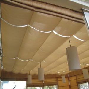– Chất liệu làm rèm trần là loại vải phủ nhựa chuyên dùng cho ngành rèm, chống nắng, chống nước và hạn chế bám bụi.